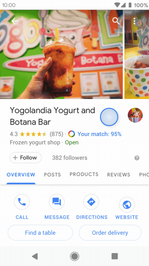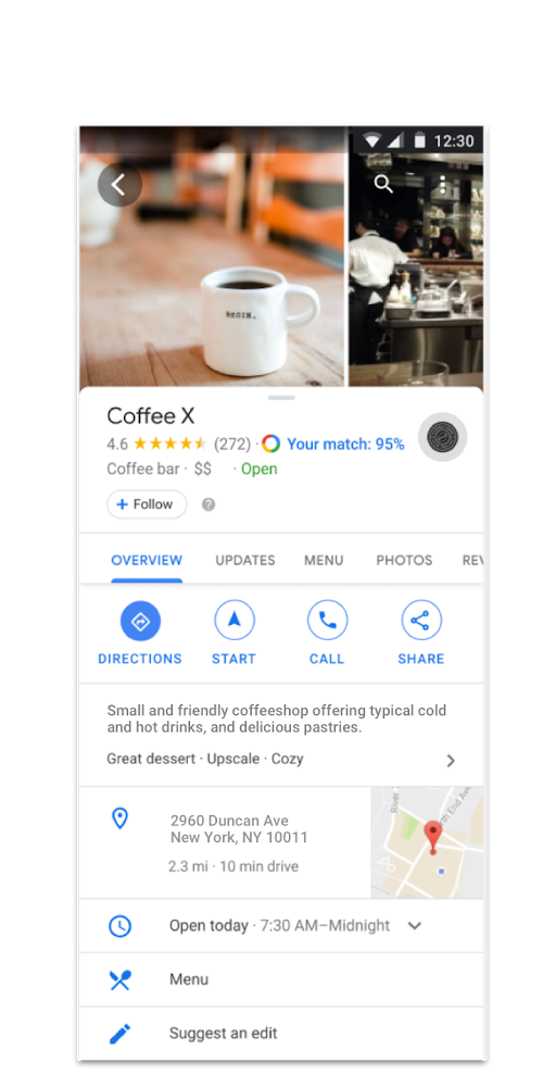 Google 我的商家已推出五年時間,幫助1.5億間的在地商家取得跟消費者的連結。隨著使用者更依賴搜尋行為,開始會使用更具體的關鍵字做搜尋,譬如:“大安區深夜咖啡店”、“不限時咖啡廳”、“多人聚會的餐廳”,使用者會希望能夠知道更多的商家資訊,可能包含訂位、訂餐、詢問菜單菜色。