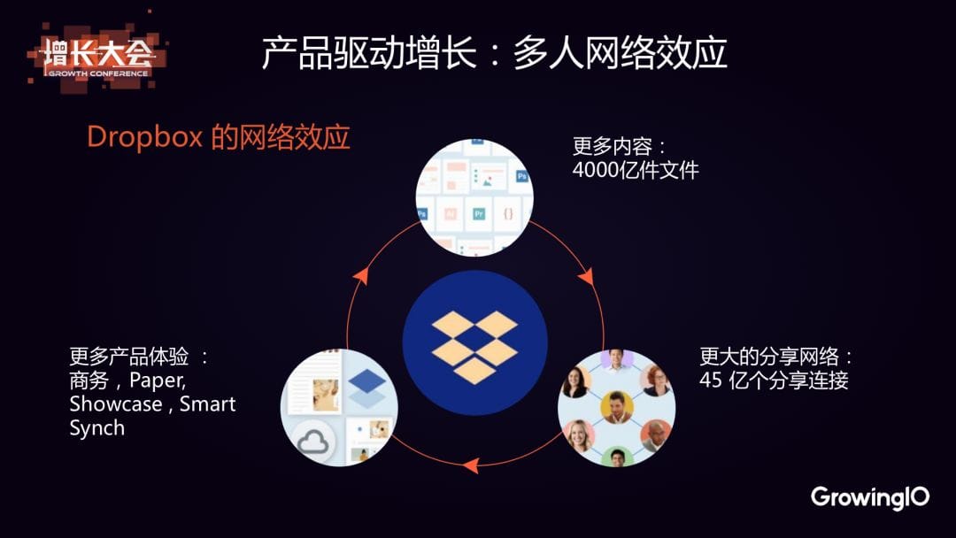 產品驅動增長的第二個點是,Dropbox 這個產品是有「多人網絡效應」的。