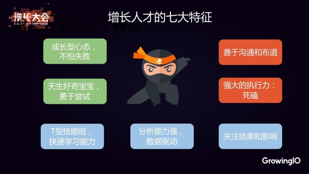 做增長也不是一件非常容易的事,所以總得來說,我們需要一些非常不錯的人來組建這樣一個團隊。根據我自己的經驗,我把增長人才的特徵總結為以下幾點: