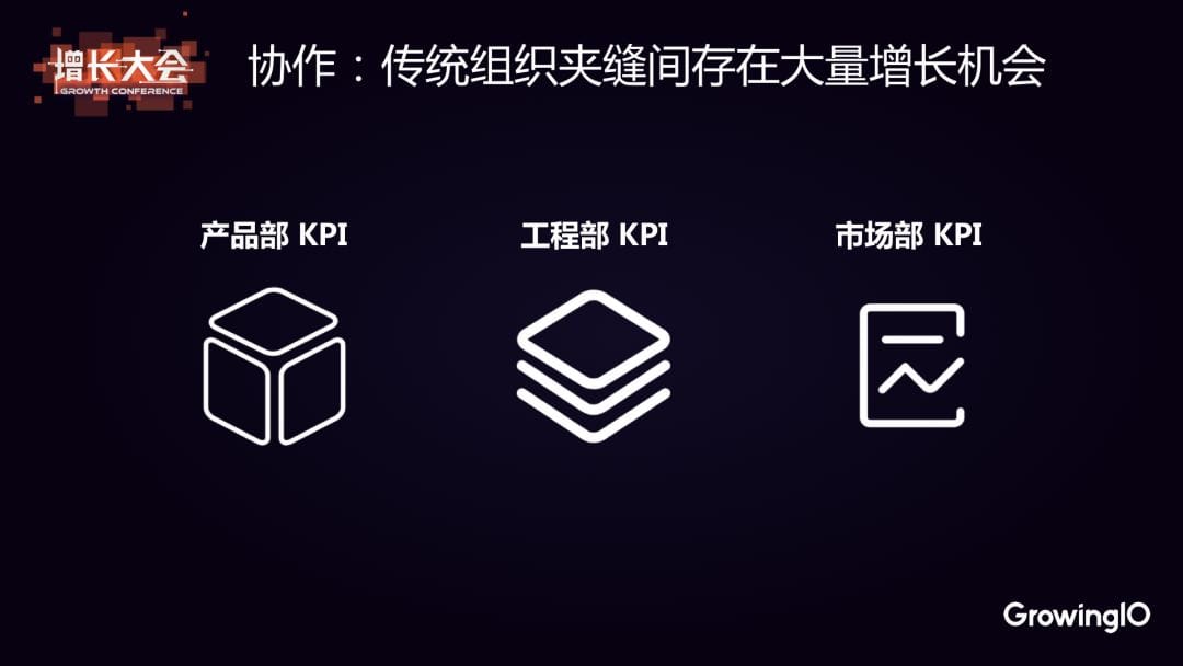 每個部門都有自己的核心 KPI,比如說產品部門的核心 KPI 就是上線了多少個新版本、新功能,用戶在產品內的使用情況如何;工程部門的核心 KPI 是代碼質量,BUG 數量等等;而市場部的核心 KPI 就是拉來了多少新用戶,品牌的知名度如何。 這種情況下,部門與部門之間其實存在著很多增長機會。舉個簡單的例子,用戶激活這個部分就屬於典型的「產品市場兩不管」(詳情請見公開課筆記:如何利用杠杆思维,撬动这块产品市场两不管地带),市場部將新用戶拉來了,已經完成 KPI 了,而產品團隊在關注產品內的功能搭建和用戶使用,新用戶上手這件事常常就被忽略掉了。 可能在日常工作中,只有具備兩方面視野的人才能準確地洞察到這個機會;也有可能大家都能看到這個機會,比如做市場的同學會意識到註冊的流程導致新用戶的轉化比較差,但是即便他們看到了,也沒有資源去推動解決這個事情。 於是大量的增長機會就這樣被忽略掉了,這是構架的問題,也是協作的問題。