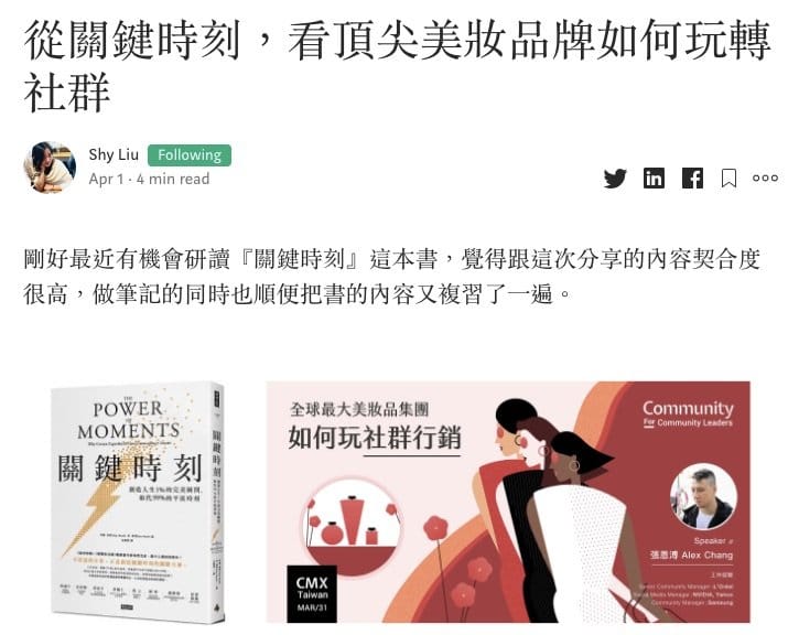 3月份的 CMX 聚會主題是『頂尖美妝品牌如何玩轉社群行銷』,主講者邀請到了前 L'Oréal 集團資深社群經理 Alex ,這次講座的進行也因為疫情改為線上形式,但活動精彩度依然不失線下,保持一貫的收穫滿滿。