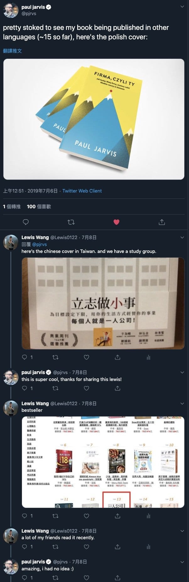 番外篇:剛好看到「一人公司」作者的推文,於是很自動的把台灣版也貼上去了。